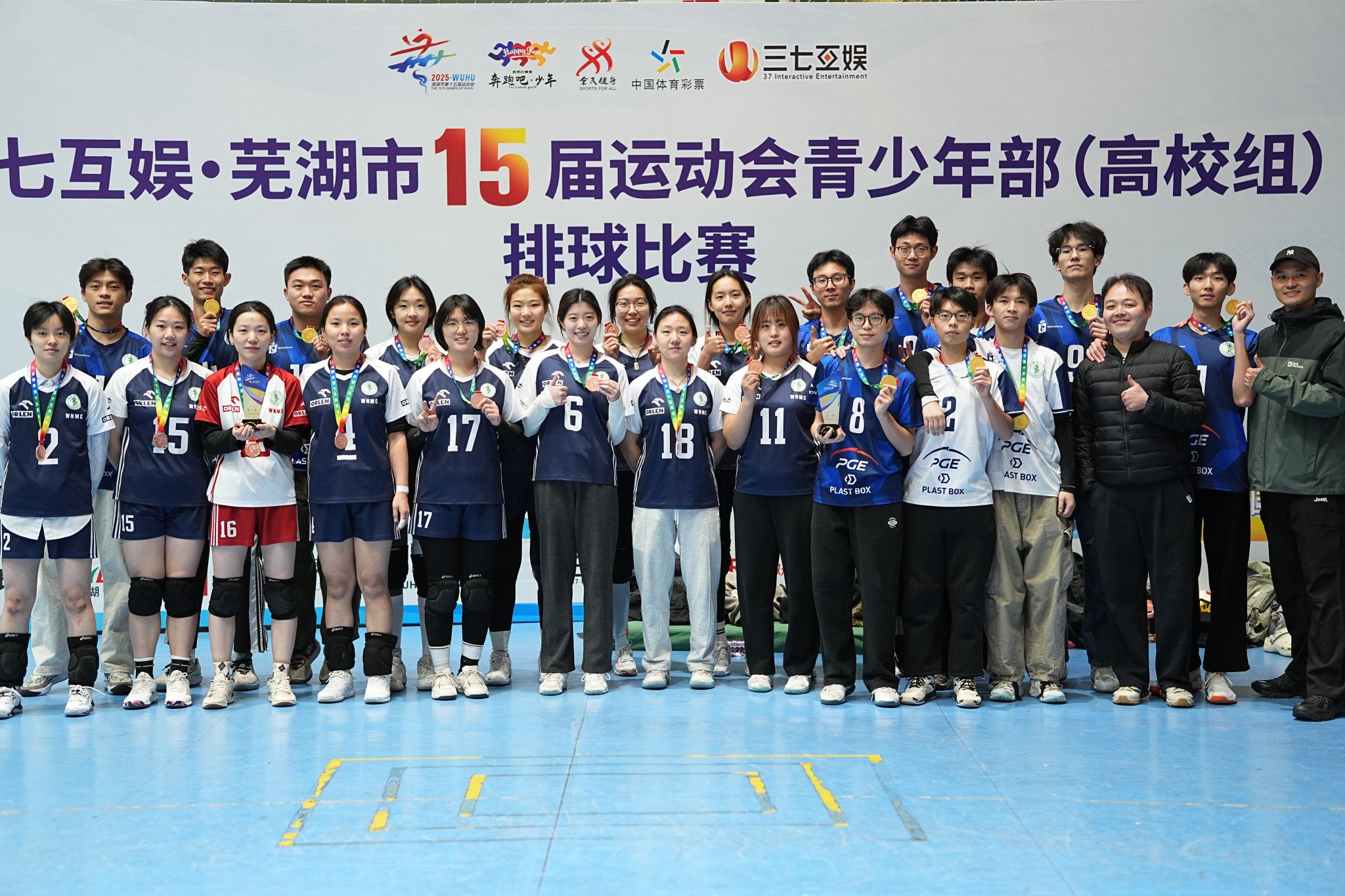 在芜湖市第十五届运动会青少年部高校组排球比赛中,皖南医学院排球队一路敢打敢拼,于赛场上展现了不俗的竞技实力与团队风貌:男子组在五支代表队的角逐中豪取四战全胜,强势摘得冠军;女子组在七支队伍的AB组循环赛后,半决赛与安徽师范大学激战五局憾负,最终在三四名决赛中战胜安徽工程大学,收获季军。