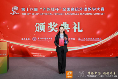 12月7日下午,第十六届“外教社杯”全国高校外语教学大赛全国总决赛在上海圆满落幕。我校公共基础学院外语教研室高洁老师,于11月斩获安徽省赛第一名后代表安徽省征战全国决赛和总决赛,最终斩获视听说课组第五名,不仅创造了我校在该项赛事的历史最佳战绩,更刷新了安徽高校外语教师获奖的最高纪录,彰显了地方高校青年外语教师在全国教学舞台上的竞争力。